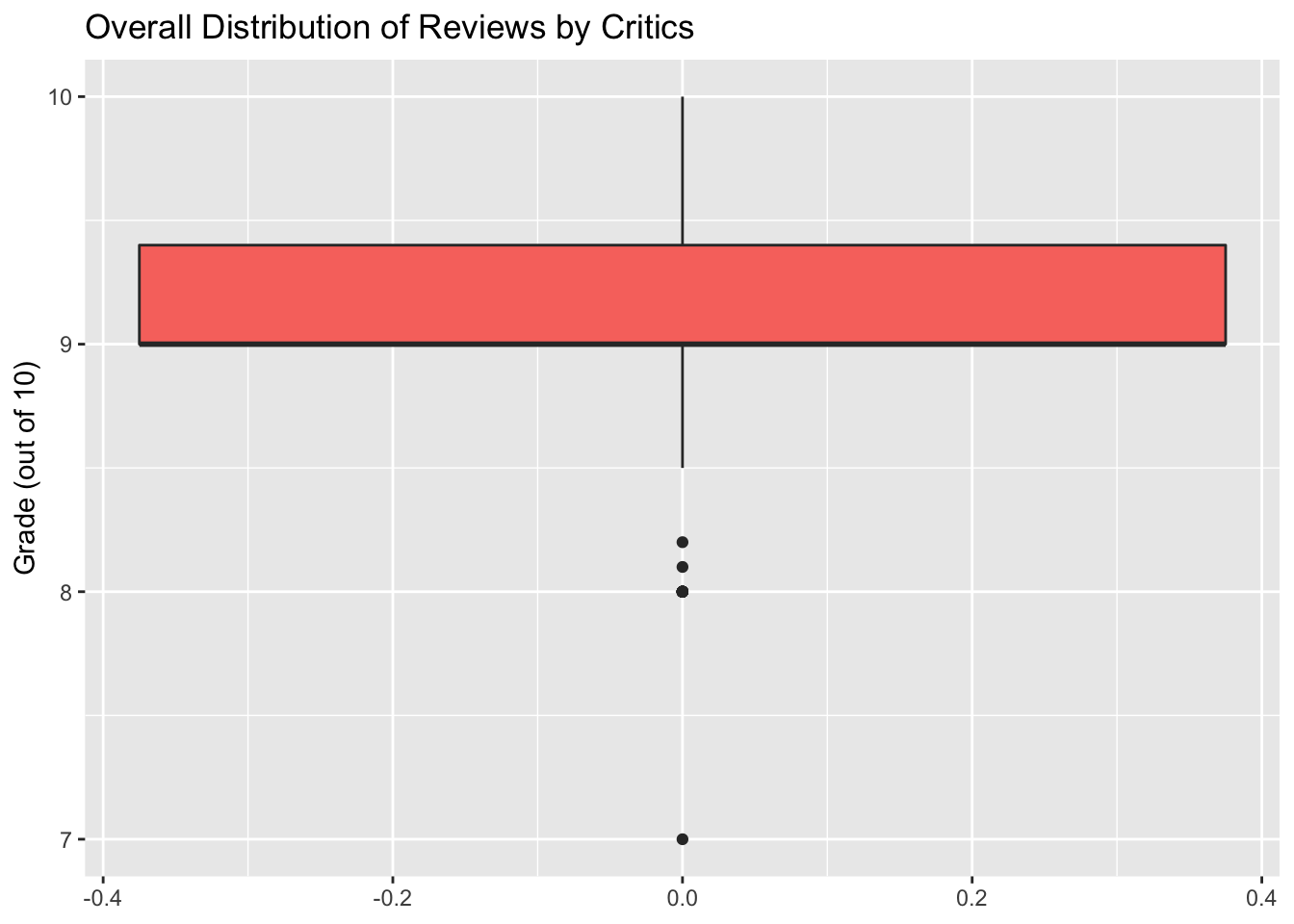 In order to compare critic versus user reviews from a slightly different angle, I created boxplots representing the overall distributions of scores.